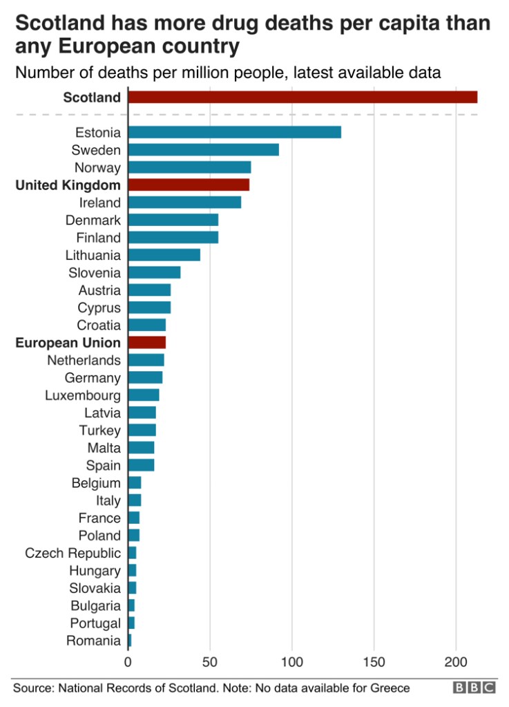 - Between the UK, Europe, and USA, Scotland ranks #1 (per capita) for number of deaths caused by drugs. (For more info, click here) While this is an issue throughout the whole of Scotland, the schemes are places especially marked by the consequences of drugs and the hopelessness addiction brings. Please join me in fervent prayer that the light of the Gospel will spread in Scotland’s schemes and that people would be saved and filled with the sure hope of Christ.
