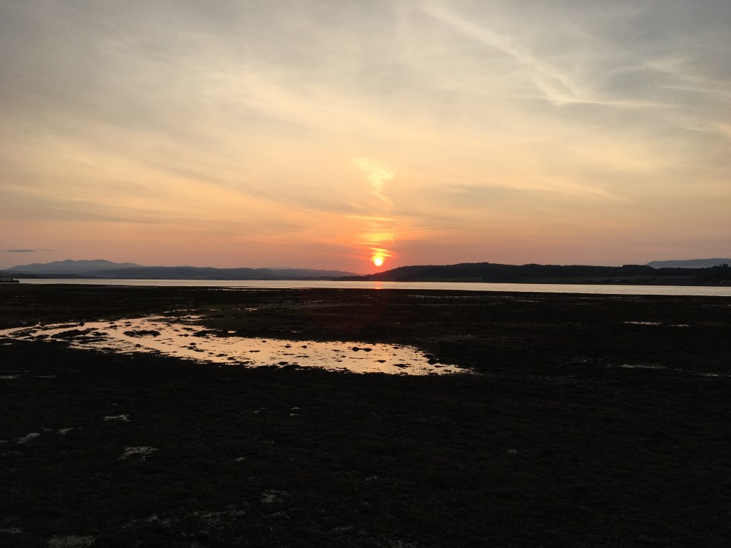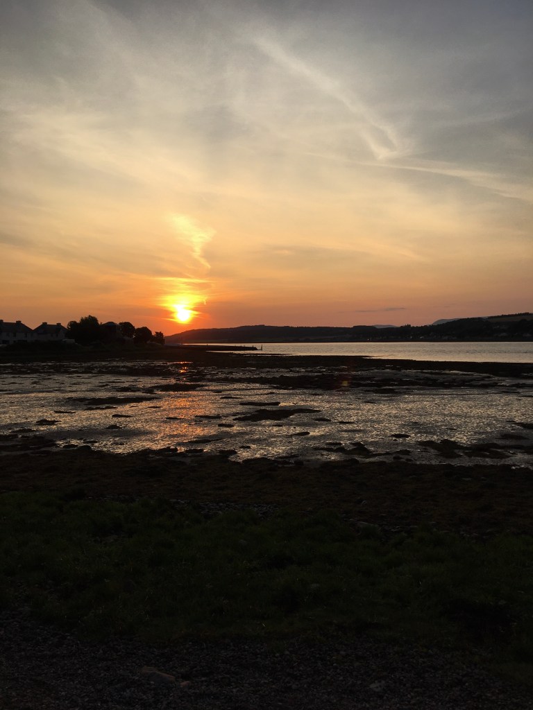 Below: Time must be headed towards autumn because the sun is setting at 9:30 now instead of 11:30. Here is the view from our community out over the firth.